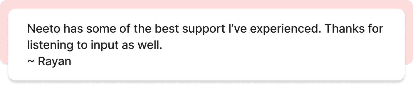 You can join the Neeto Community on Slack and chat directly with the engineers, designers and other folks building Neeto. We are also on Twitter and LinkedIn.